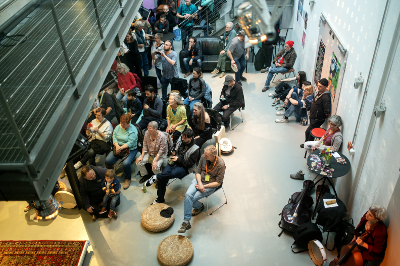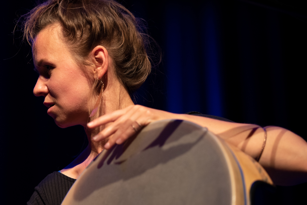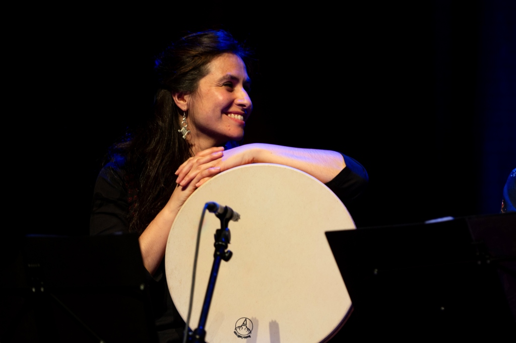 Kasia Kadłubowska aus Polen genießt die spannende Balance zwischen zeitgenössischer Musik, Tribal Pop und traditioneller Volksmusik aus Mittel- und Osteuropa. Mit Mallets am Vibraphon und einer großen Liebe zur Rahmentrommelmusik geht sie einen eigenen musikalischen Weg. Sara Fotros, iranische Musikerin aus London zeigt kraftvolle Percussion auf der persisch-kurdischen Rahmentrommel Daf. Gesine Bänfer aus Freiburg ist mit „wind and strings“ in der Alten Musik wie im Folk zu Hause. Isabel Martín aus Spanien spürt in ihrem Gesang und der iberischen Rahmentrommel Pandero Cuadrado den Wurzeln mediterraner Musikkulturen nach. Malika Coşkun setzt als junge Stimme eigene perkussive Akzente.