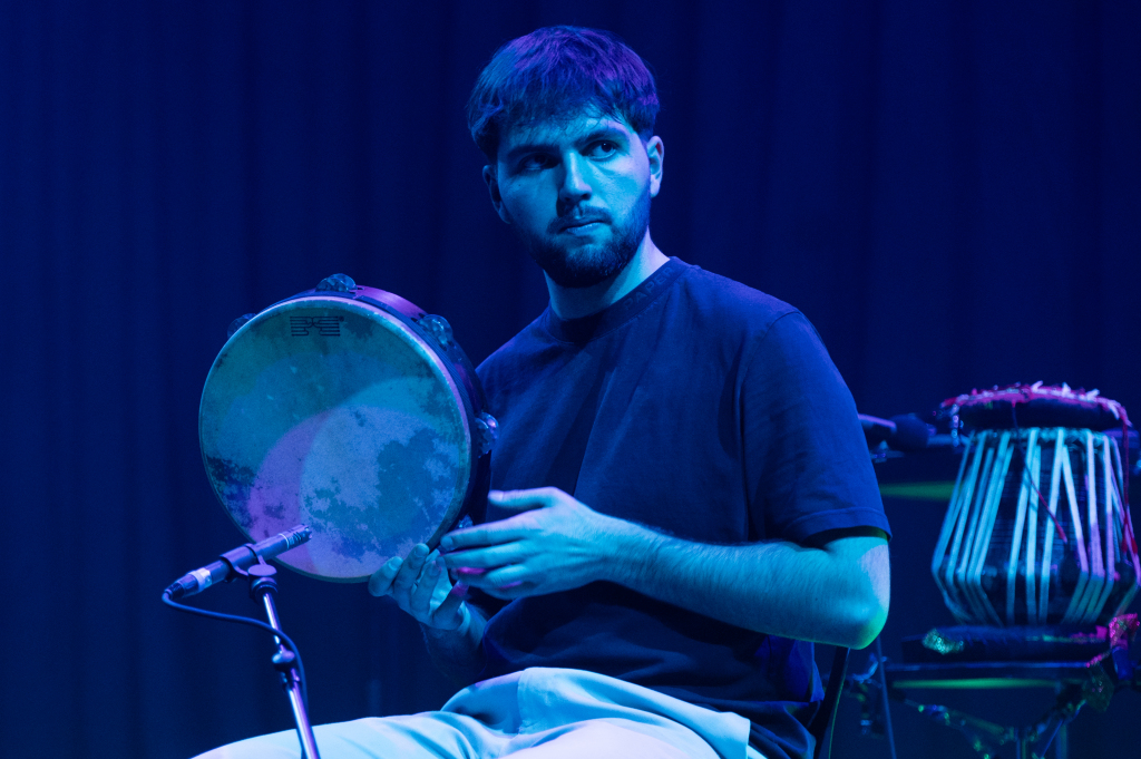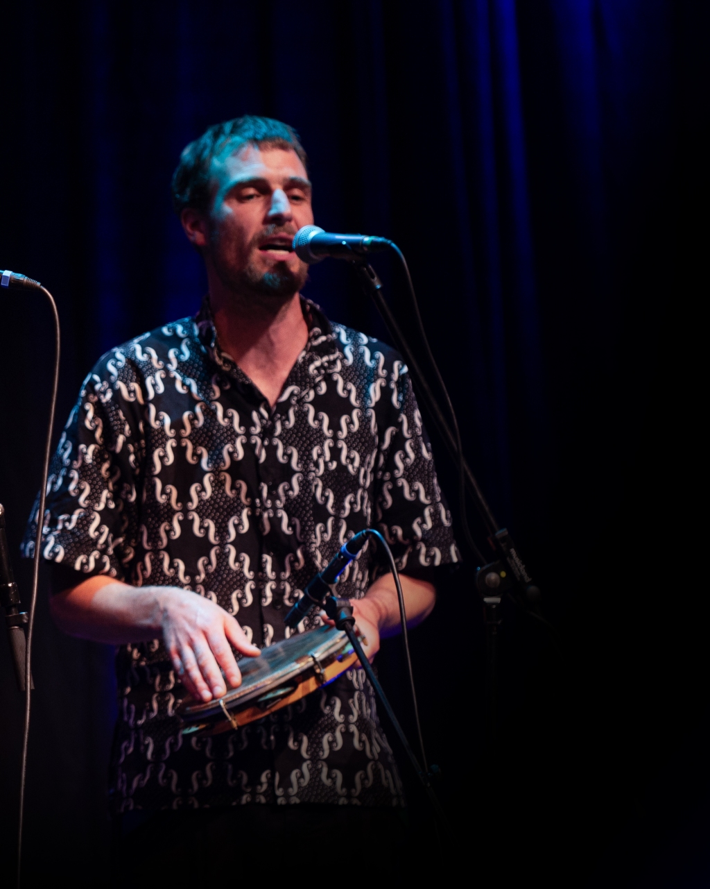 Max Gerwien, Frame Drum Award Preisträger 2024, überzeugt in einer atemberaubenden Solo-Percussion-Show und gesellt sich als drumming guest zu den diversen Acts des Abends.